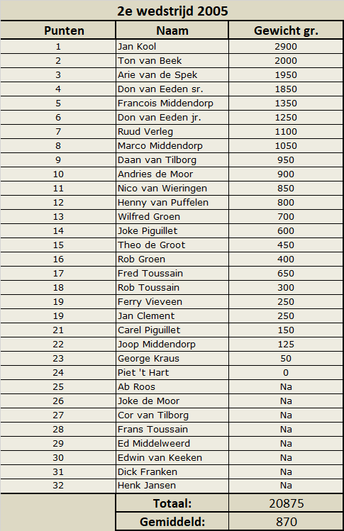 Er werd deze dag aardig gevangen met als uitschieter Jan Kool die een knaap van een brasem ving (52 cm)