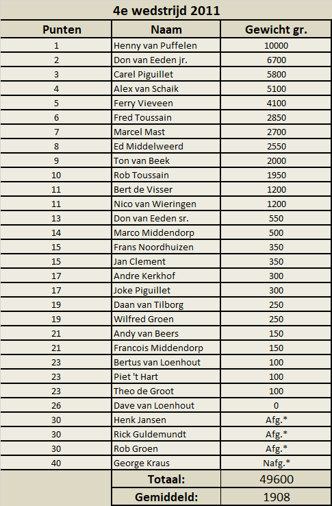 Met een uiteindelijke vangst van ruim 49 kilo was het gewoon een mooi totaal maar zoals zo vaak waren de vangsten niet gelijkelijk verdeeld.