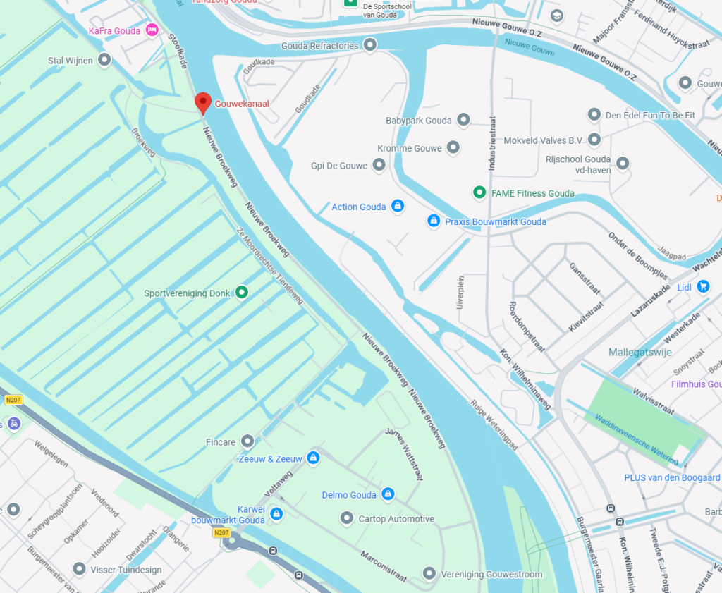 Het Gouwekanaal in Gouda is een uitstekende locatie voor het vangen van witvis (voorn, brasem, kolblei) en baars, waarbij de feederhengel (met 20-40g korf) vaak effectiever is dan de vaste stok vanwege de smalle oevers. De beste stekken bevinden zich vaak op zo’n 20 meter uit de oever of bij de overkant.